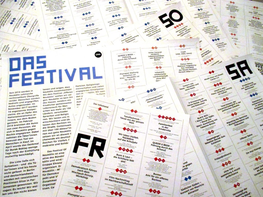 Das ganze Wochenende stehen wir auf dem Alfred-Scholz-Platz (U Karl-Marx-Straße) und freuen uns, mit euch ins Gespräch zu kommen. Es gibt Musik, Getränke und jede Menge Infomaterial rund um das Festival und die beteiligten Akteur*innen.
